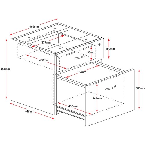 Rapidline Rapid Worker Fixed Pedestal 1 Drawer 1 File 465W x447Dx454mmH Ironstone
