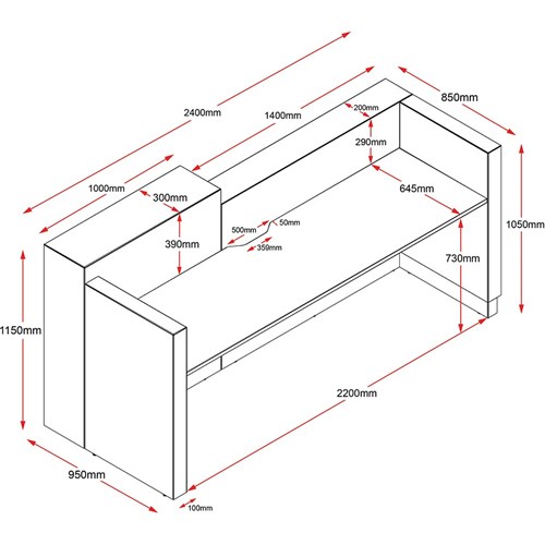 Rapidline Sempre Reception Counter 2400W x 950D x 1150mmH Natural Oak And Black