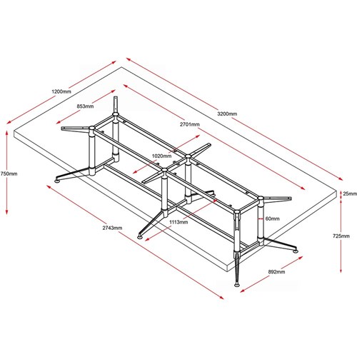 • Black powder coated frame and rails and polished aluminium feet with adjustable feet