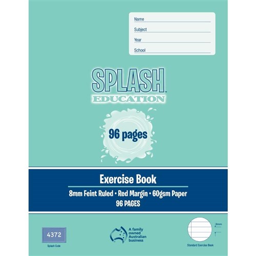 Splash Education Exercise Book 225 x 175mm 8mm Ruled With Red Margin 96 Page