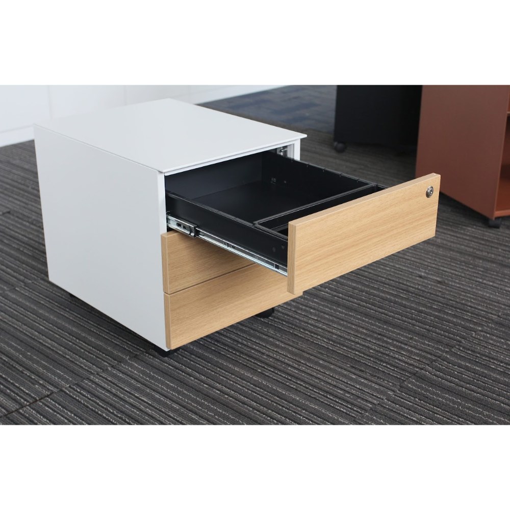 Steelco Hybrid Trimline Mobile Pedestal 2 Drawer 1 File 390W x 500D x 615mmH White
