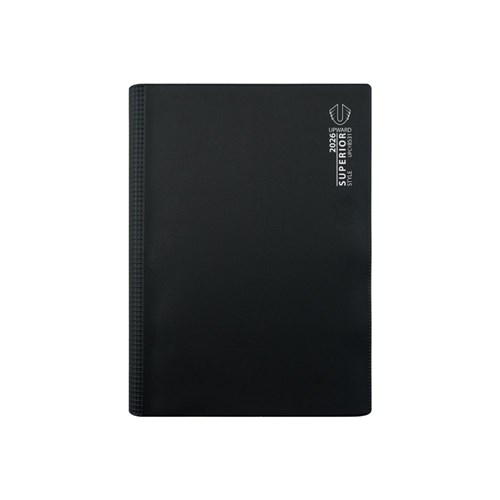 • Featuring a padded, phthalate free, PVC cover, pockets for storing business cards and wire-o binding to allow the diary to lie completely flat when open.