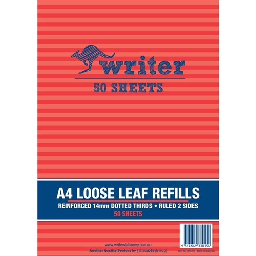 Writer Binder Refills A4 14mm Dotted Thirds Pack of 50
