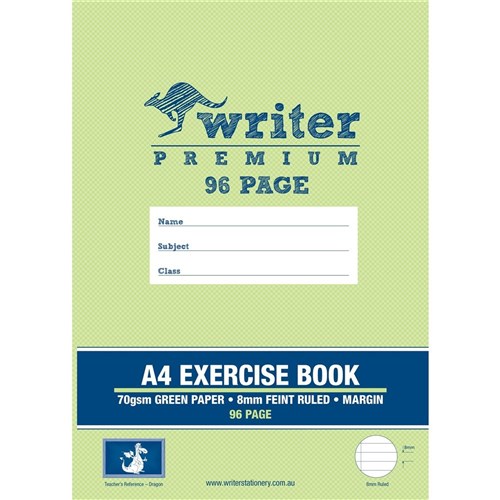 Writer Premium Exercise Book A4 8mm 70gsm With Margin 96 Page Green Paper-Dragon