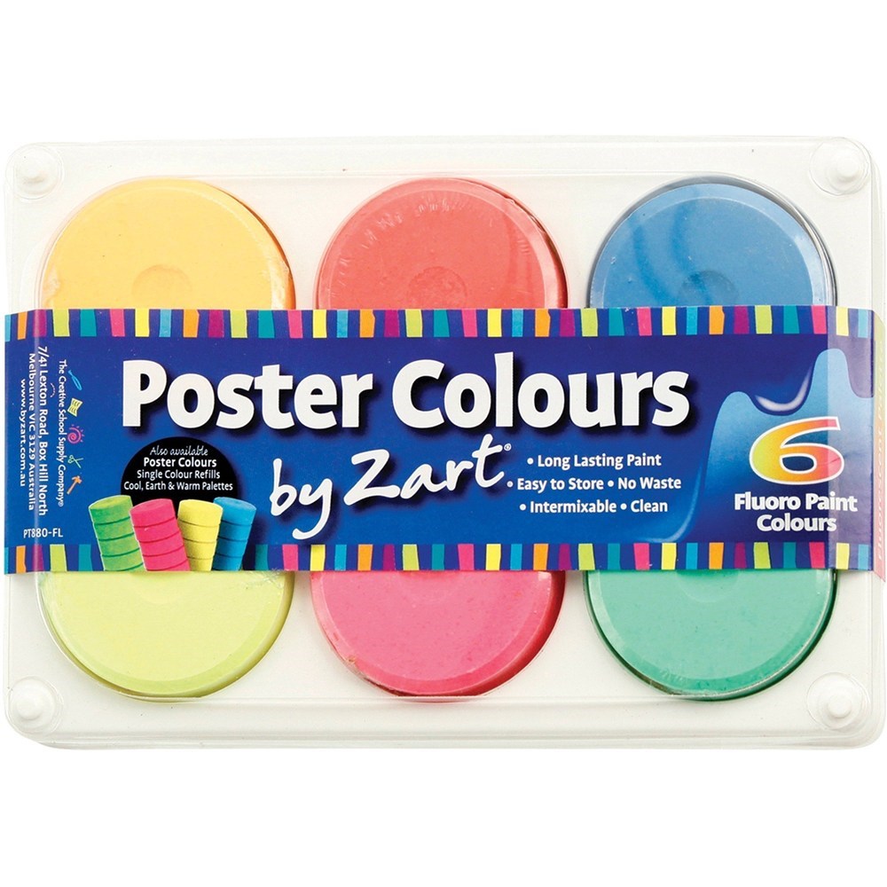 Zart Poster Colours Paint Assorted Fluorescent Colours Pack of 6